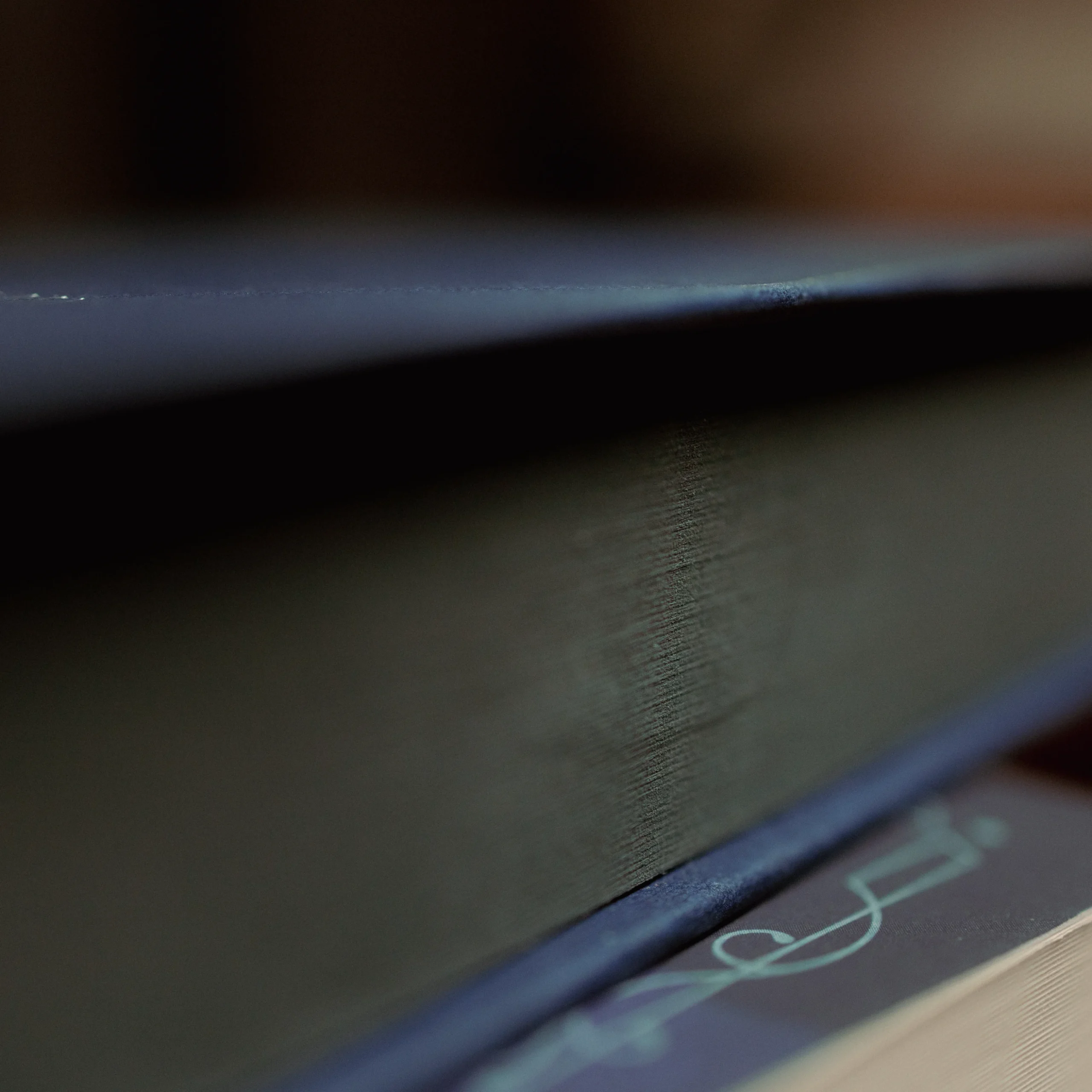 Bound in blue. Stamped in silver. Black-edged for a boxy silhouette.